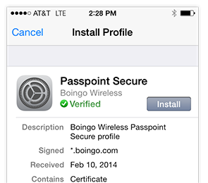 Follow the instructions to download and install the Passpoint Secure profile.